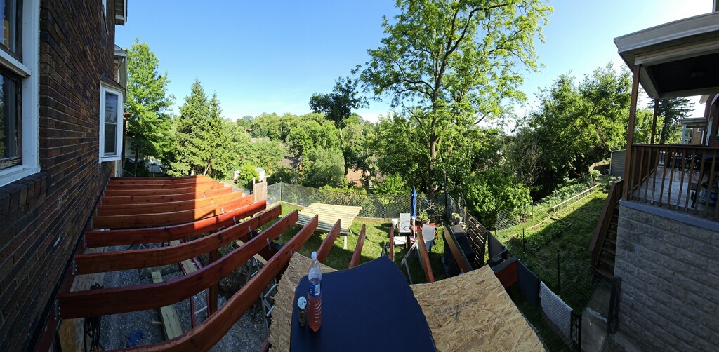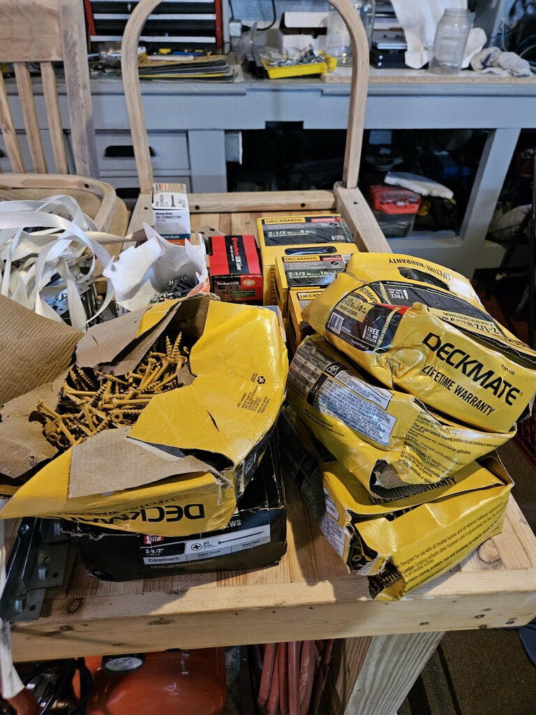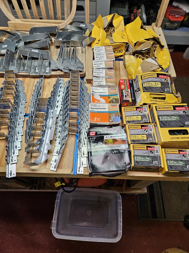 May 20 so far 16 joists / 2 brackets per x 10 screws each / haven't screwed this much since i was a teenager
