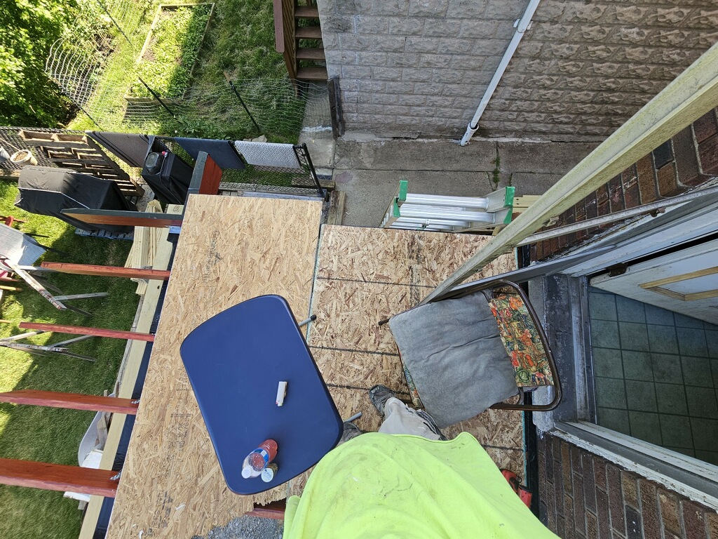 June 2 end of deck done for stairs / rail posts up /ready to start putting down floor