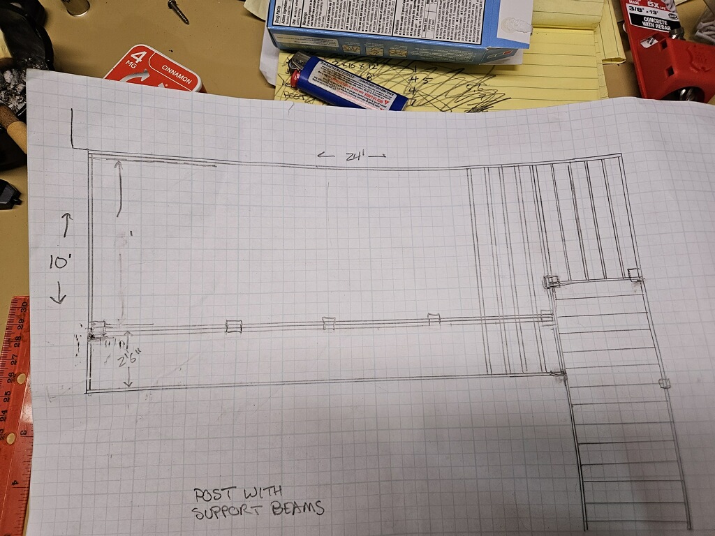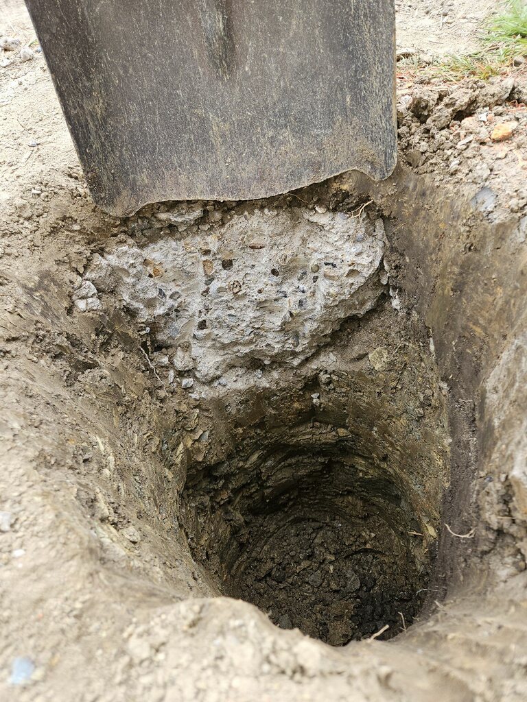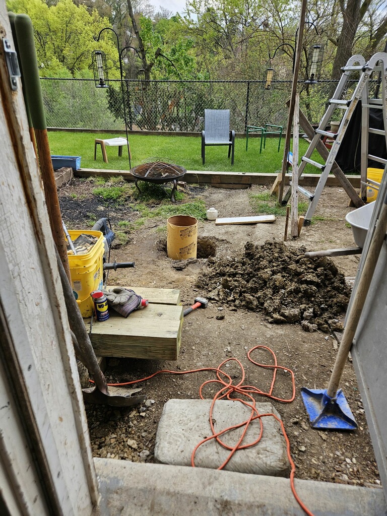 April 24 found footer from old porch 3 inches into first hole - had to break out the power hammer