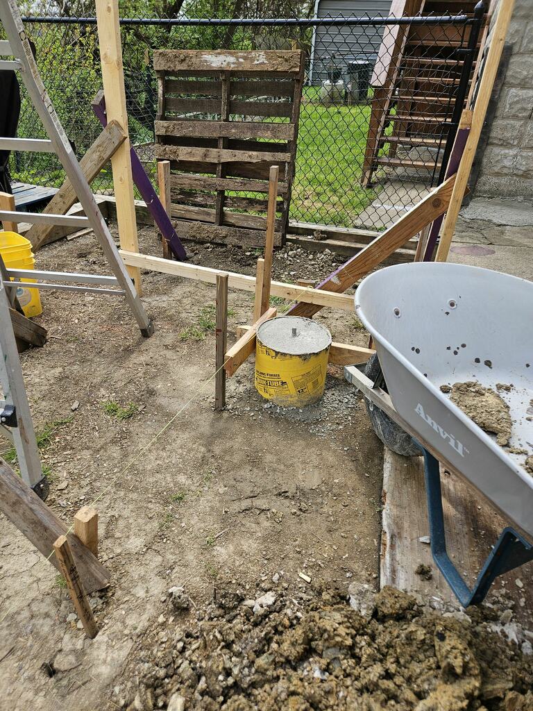 April 30 #4 - dug - leveled - ready to pour - poured #3 and #4 - 13 eighty pound bags in 1 hr and 45 minutes