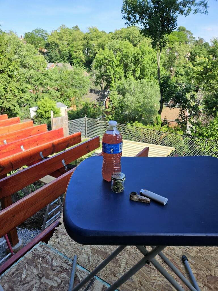 June 15 fourth bandana / third shirt / 1/2 gallon of water and a quart of pedialyte / BRUTAL outside